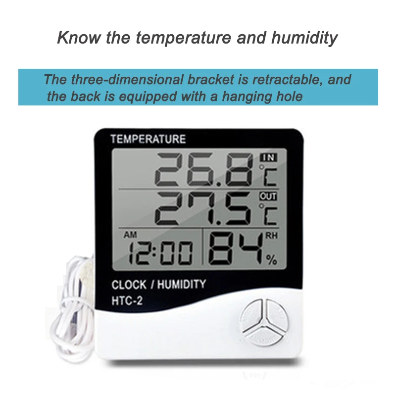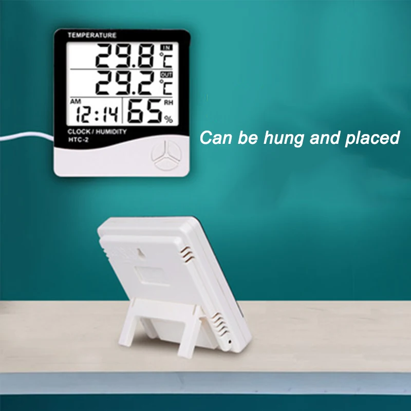 Digitales LCD Thermometer und Hygrometer 1 Stück elektronisches Thermometer für den Innen- und Außenbereich, Wetterstation mit Wecker